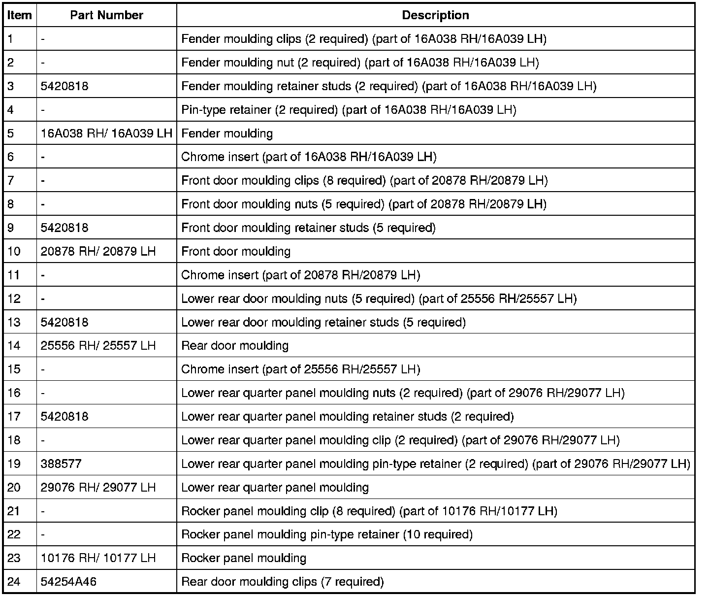 Exterior Trim - Exploded View