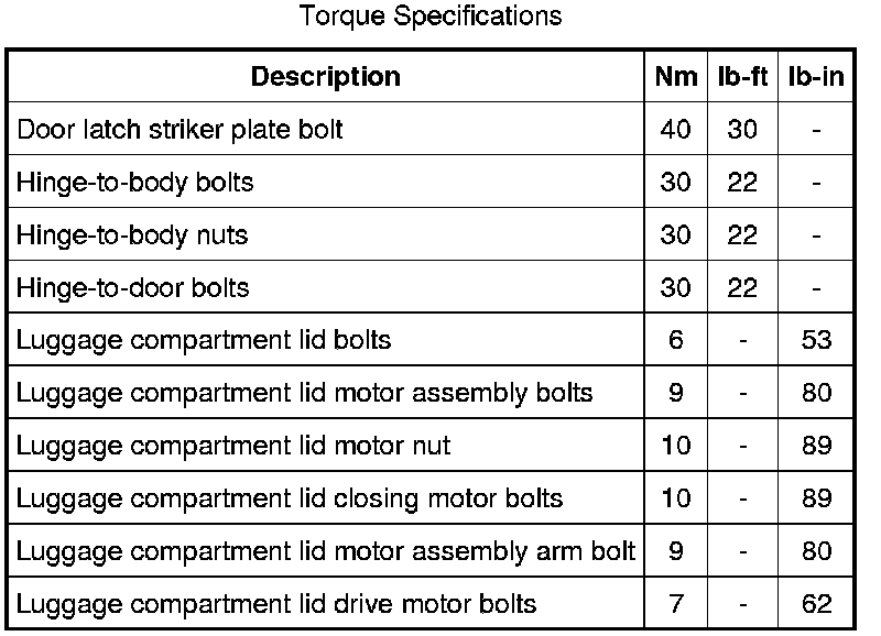 Torque Specifications