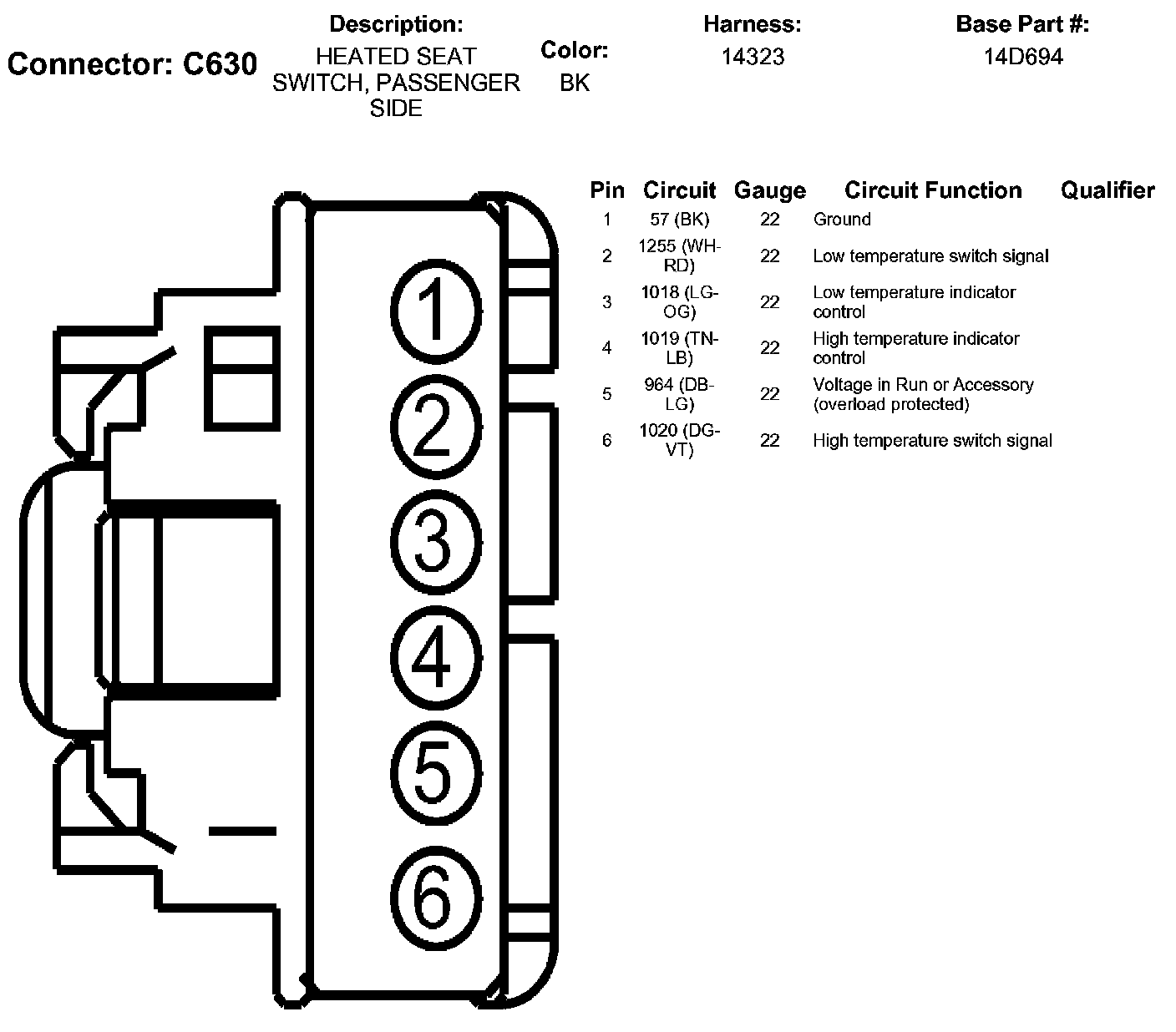 Heated Seat Switch, Passenger Side
