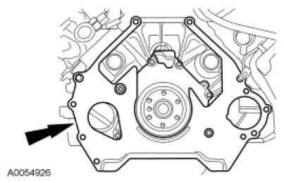 116. Apply sealant at the front cover-to-cylinder block sealing surface.