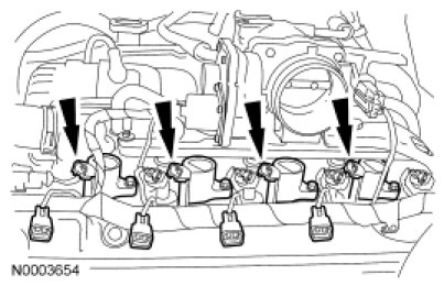 103. Connect the 8 ignition coil electrical connectors (4 shown).