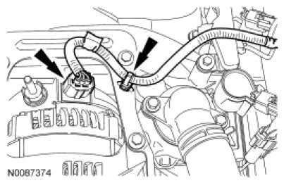 106. Connect the KS electrical connector and install the harness retainer to the intake manifold.
