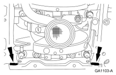 Apply the sealant at the rear oil seal retainer to cylinder block sealing surface.