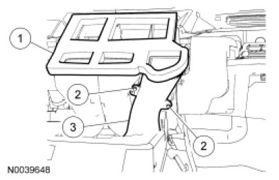 14. Remove the upper evaporator core housing nuts.