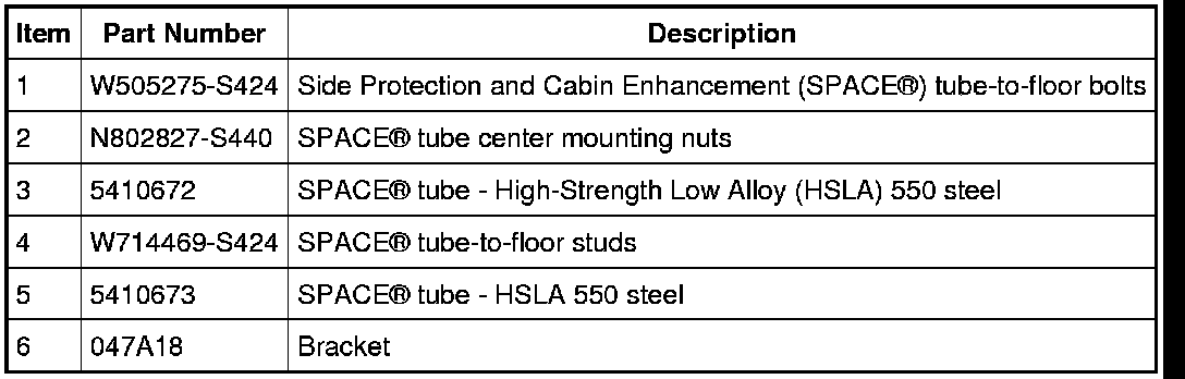 NOTE: The Side Protection and Cabin Enhancement (SPACE(R)) tube is a 2-piece assembly, right or left side can be replaced individually.
