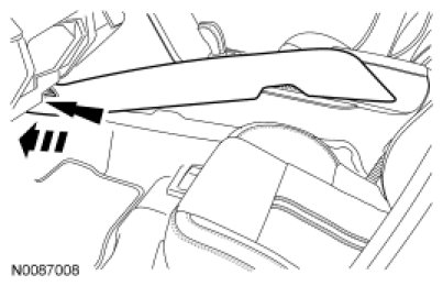 Pull the middle and rear of the LH and RH floor console lower trim panels outward to release the retaining clips.
