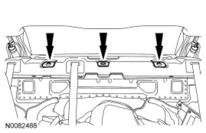 1. Remove the rear seat backrest. For additional information, refer to Seats.