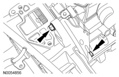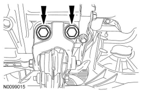 49. Remove the 2 rear engine roll restrictor-to-transaxle bolts.