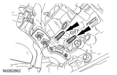 50. Remove the 2 front engine roll restrictor-to-transaxle bolts.