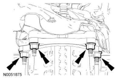 Remove the subframe bracket-to-body bolts.