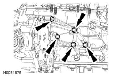 73. Remove the 5 bolts and the Power Transfer Unit (PTU) support bracket.