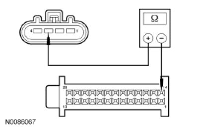 - Measure the resistance between blower motor C2004-2, circuit VH301 (YE/BU), harness side and blower motor speed control C271-2, circuit VH301 (YE/BU), harness side.