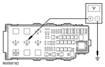 - Measure the voltage between blower motor relay socket pin 30, circuit SBB35 (BU/RD) and ground.