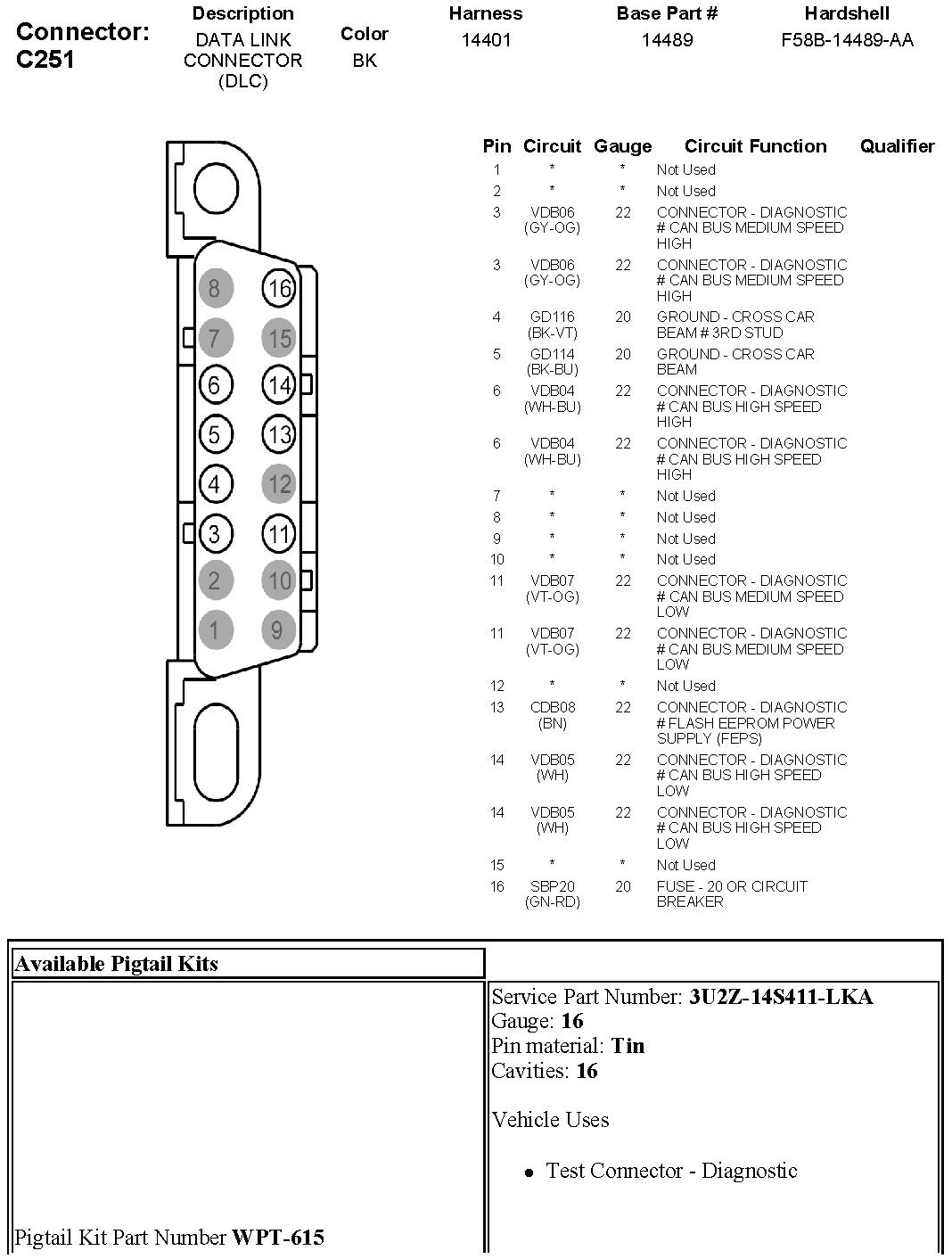 Data Link Connector: Diagrams