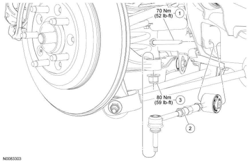 NOTICE: Suspension fasteners are critical parts because they affect performance of vital components and systems and their failure may result in major service expense. New parts must be installed with the same part numbers or equivalent part, if replacement is necessary. Do not use a replacement part of lesser quality or substitute design. Torque values must be used as specified during reassembly to make sure of correct retention of these parts.