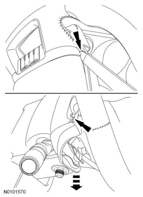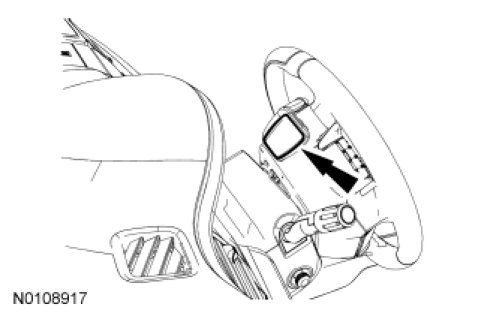 1. NOTE: Steering wheel shown turned to remove the LH paddle shifter. When removing the RH paddle shifter, turn the steering wheel in the opposite direction.