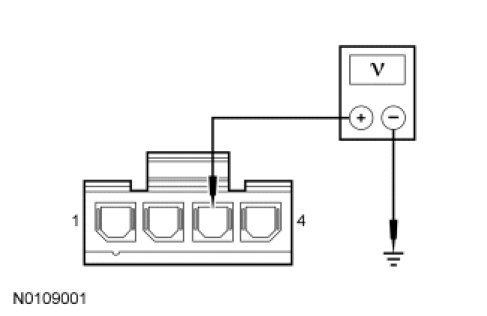 - Measure the voltage between rain sensor C914-1, circuit CBP43, harness side and ground.