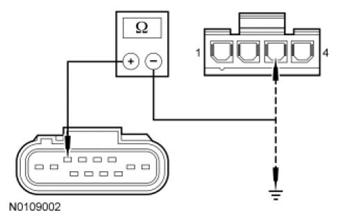 - Measure the resistance between rain sensor C914-4, circuit GD133, harness side and ground.