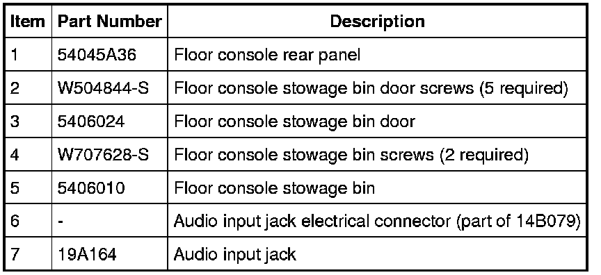 4. NOTE: Release the rear clips of the LH and RH floor console upper trim panels (located along the top-outer edges of the floor console) to gain access to the floor console stowage bin screws.