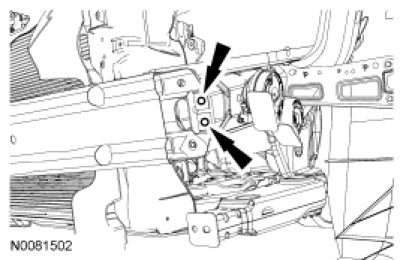 7. NOTE: The spot welds retaining the front bumper to the body rails are not required for installation. Install new front bumper bolts.