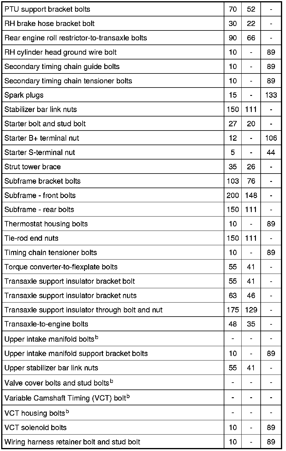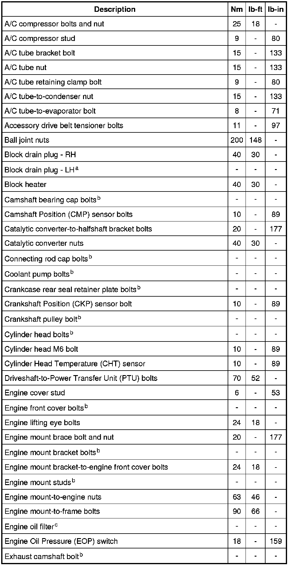 Torque Specifications