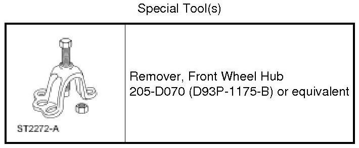 3. Remove the brake disc. For additional information, refer to Disc Brake System.