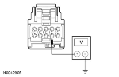 - Measure the voltage between DCSM C3305a-K, circuit RHS01 (WH/VT), harness side and ground.