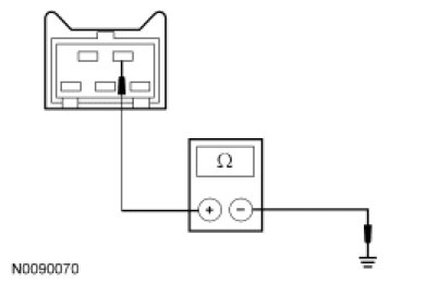 - Measure the resistance between the clutch pedal cruise control deactivator switch C2070-4, circuit CE904 (GN/VT), harness side and ground.