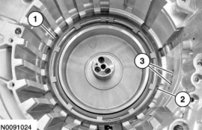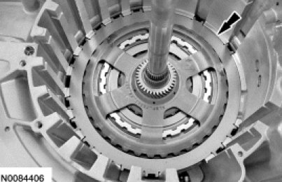 17. NOTICE: Be sure the snap ring is aligned with the gap facing the front of the transaxle or damage to the transaxle can occur. The front of the transaxle is where the low/reverse and forward (1, 2, 3, 4) clutch hydraulic ports are located.
