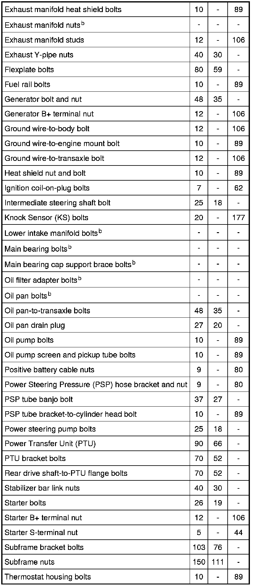 Torque Specifications