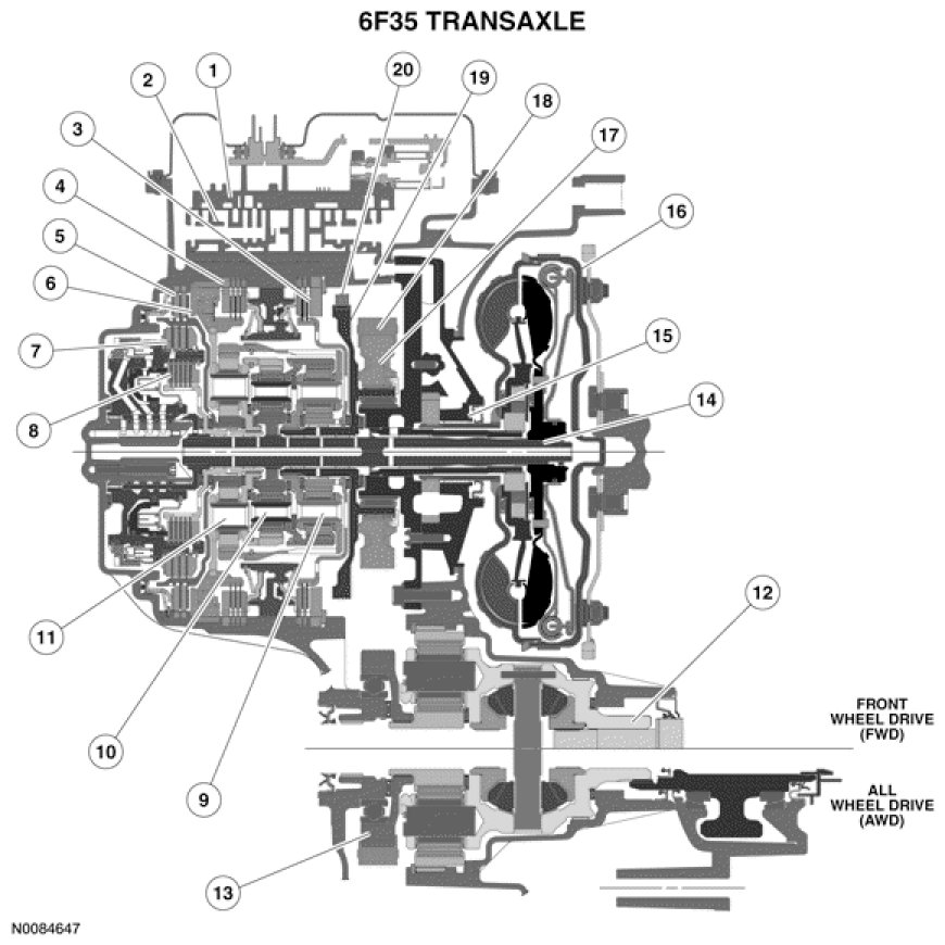 This transaxle has the following major components: