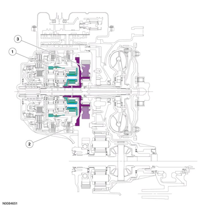 The O/D clutch is a drive clutch that transfers power from the direct/O/D clutch hub assembly to the rear planetary carrier. The O/D clutch is applied in 4th, 5th and 6th gears.
