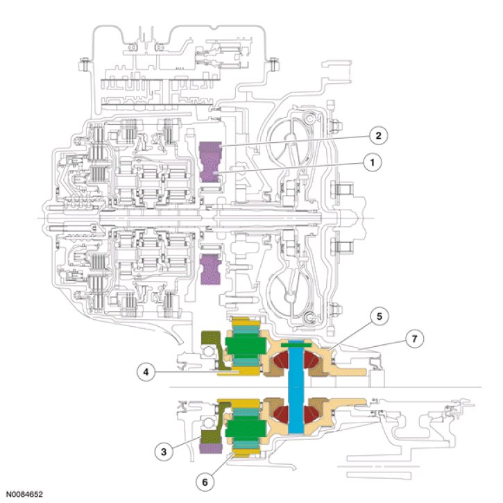 The differential allows the halfshafts and wheels to rotate at different speeds during cornering and transfers power to the Power Transfer Unit (PTU) for All-Wheel Drive (AWD) vehicles.