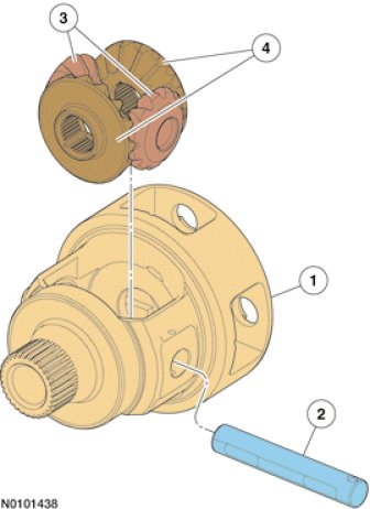 The No. 4 thrust bearing is part of the rear planetary carrier assembly. The No. 9 thrust bearing is part of the front planetary carrier assembly. The No. 14 thrust bearing is part of the differential assembly.