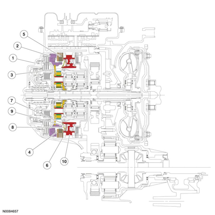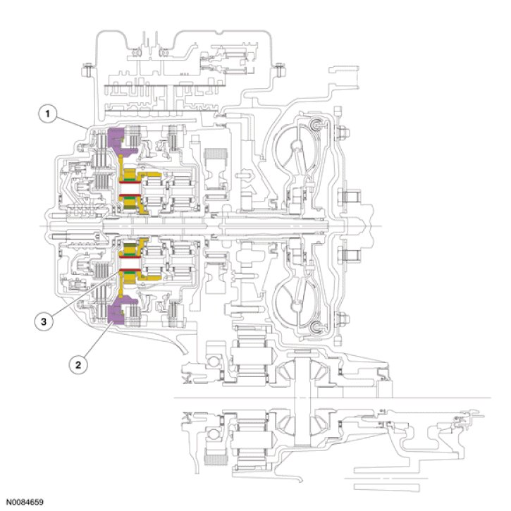 The low/reverse clutch is a brake clutch that holds the low OWC which is splined to the rear planetary carrier. The low/reverse clutch is applied in manual LOW, REVERSE and 1st gear up to 6 km/h (4 mph).