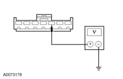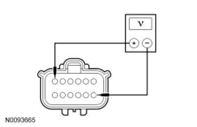 - Measure the voltage between interior mirror C911-3, circuit 140 (BK/PK), harness side and ground.