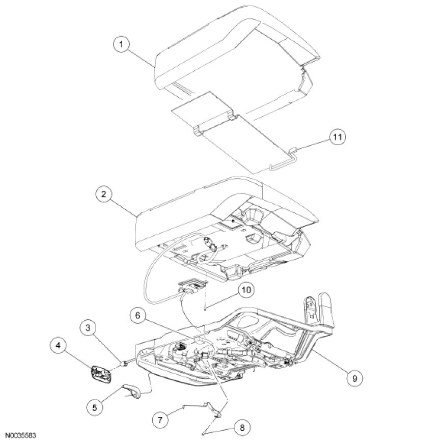 2. Remove the front seat backrest. For additional information, refer to Seats.