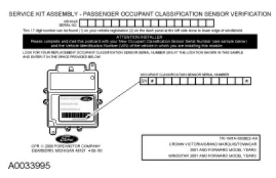 25. NOTE: When installing a new OCS system service kit, a prepaid return postcard is provided with the new OCS system service kit. The serial number for the new part and the Vehicle Identification Number (VIN) must be recorded and sent to Ford Motor Company.