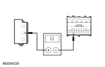 - Measure the resistance between the RFR module C9026-2, circuit RPL56 (WH/GN), harness side and the RFA module C2153c-21, circuit RPL56 (WH/GN), harness side.