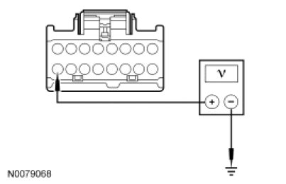 - Measure the voltage between DCSM C3265c-16, circuit CHS03 (GN/BN), harness side and ground.