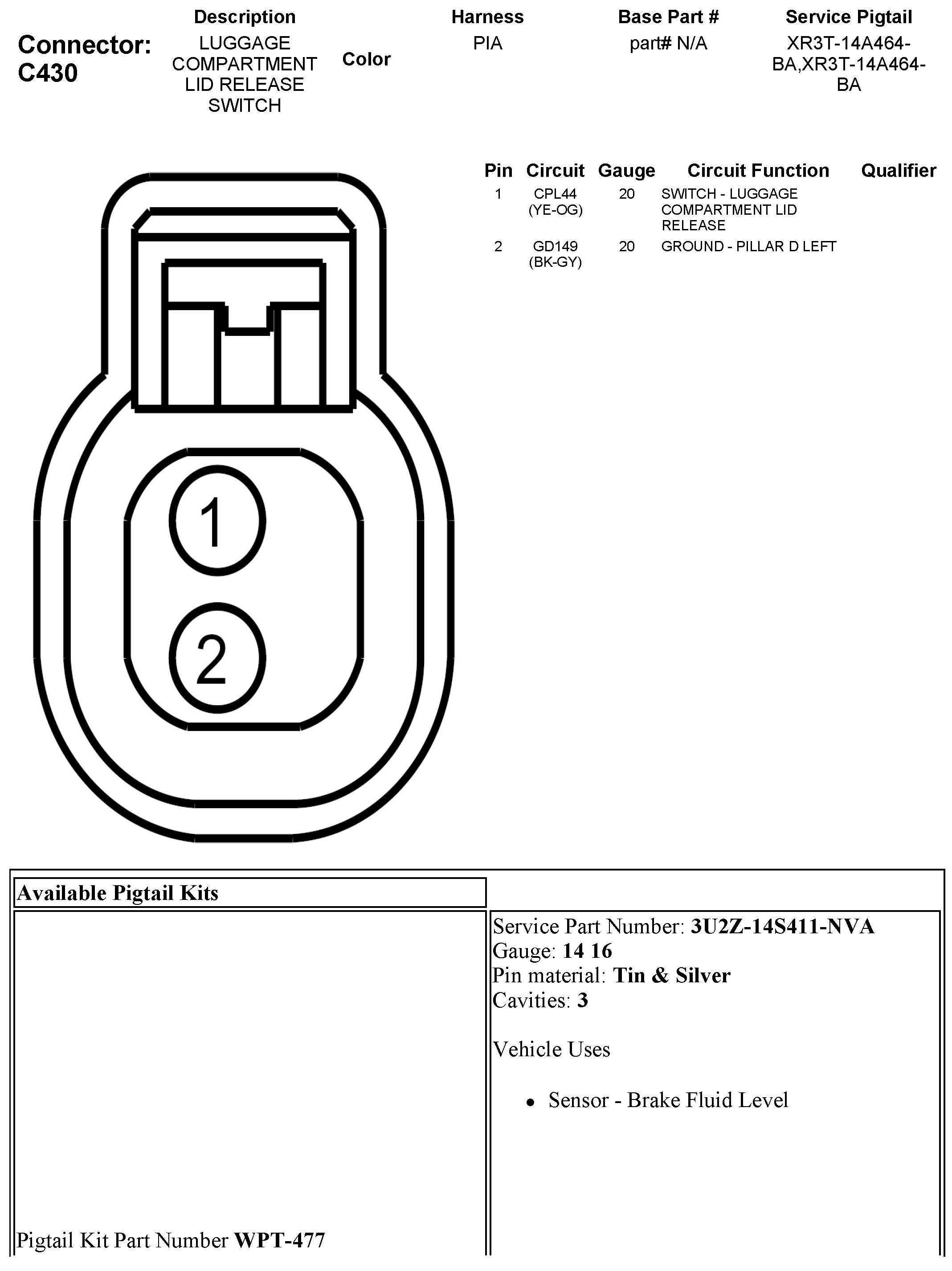C430 Luggage Compartment Lid Release Switch