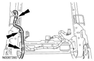 Route and attach the side air bag module wire harness to the seat backrest frame. For correct passenger seat backrest wire harness routing, refer to Seat Wire Harness Routing in the General Procedures portion of Seating Seat Wire Harness Routing.