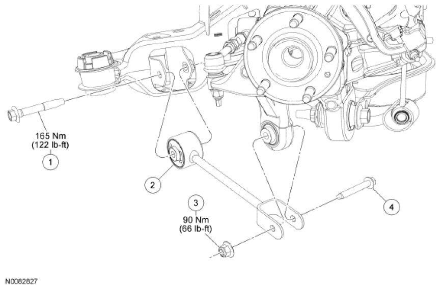 5. Remove and discard the trailing arm-to-subframe bolt.