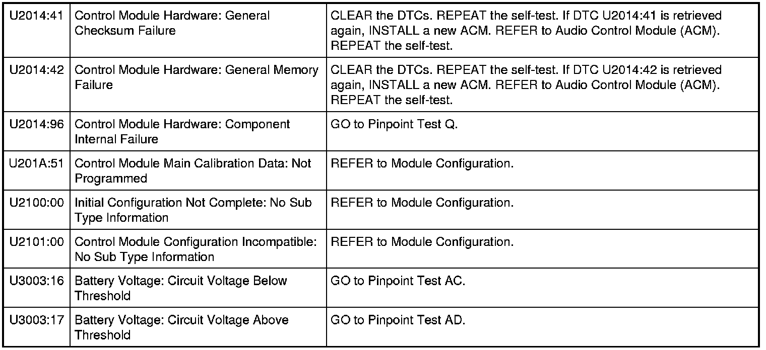 Audio Control Module (ACM) DTC Chart
