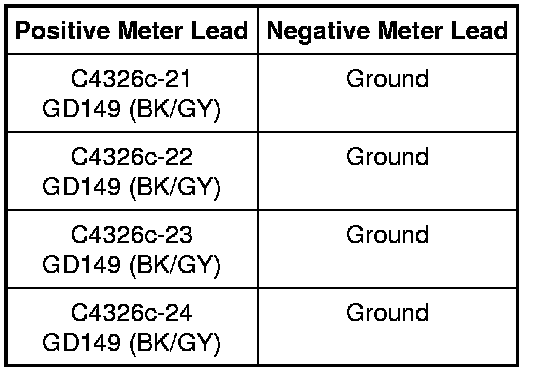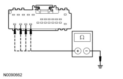 - Measure the resistance between the audio DSP module C4326c, harness side and ground as follows: