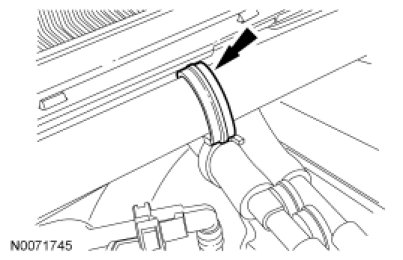 9. Remove the vacuum hose clip from the strut tower cross brace.