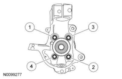 - To install, tighten the new bolts to 133 Nm (98 lb-ft) in the sequence shown.