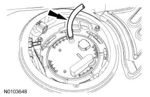 Disconnect the fuel tank jumper tube-to- FP module quick connect coupling. For additional information, refer to Fuel System - General Information Service and Repair.