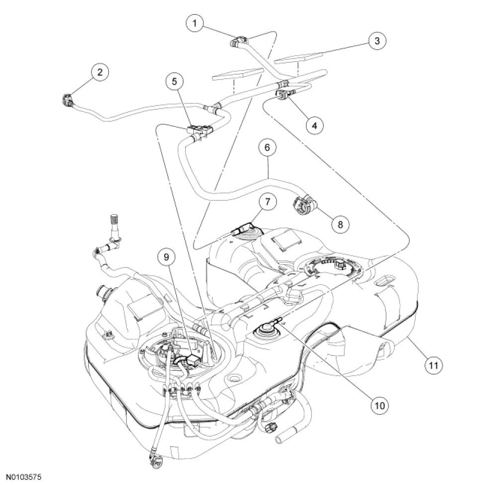 5. Release the retainer clips and remove the fuel vapor tube assembly.