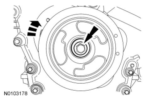 5. Using the crankshaft pulley bolt, turn the crankshaft until the fuel injection pump cam lobe is at BDC.